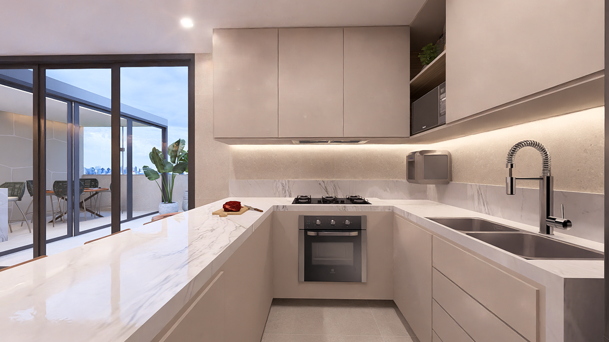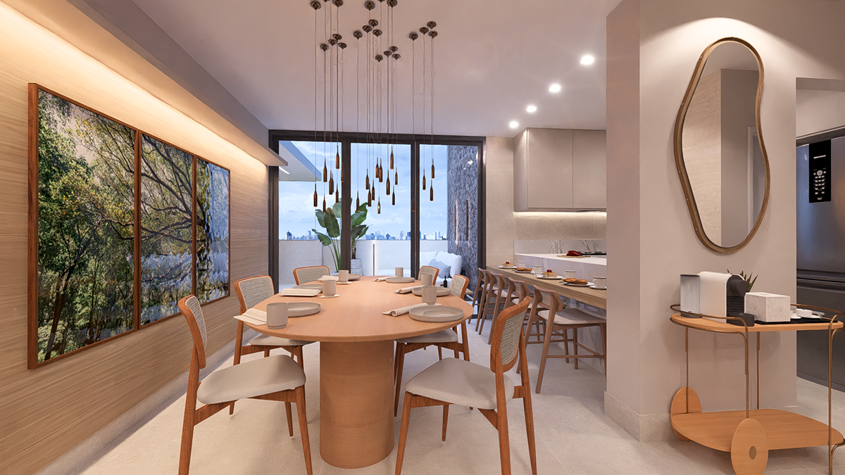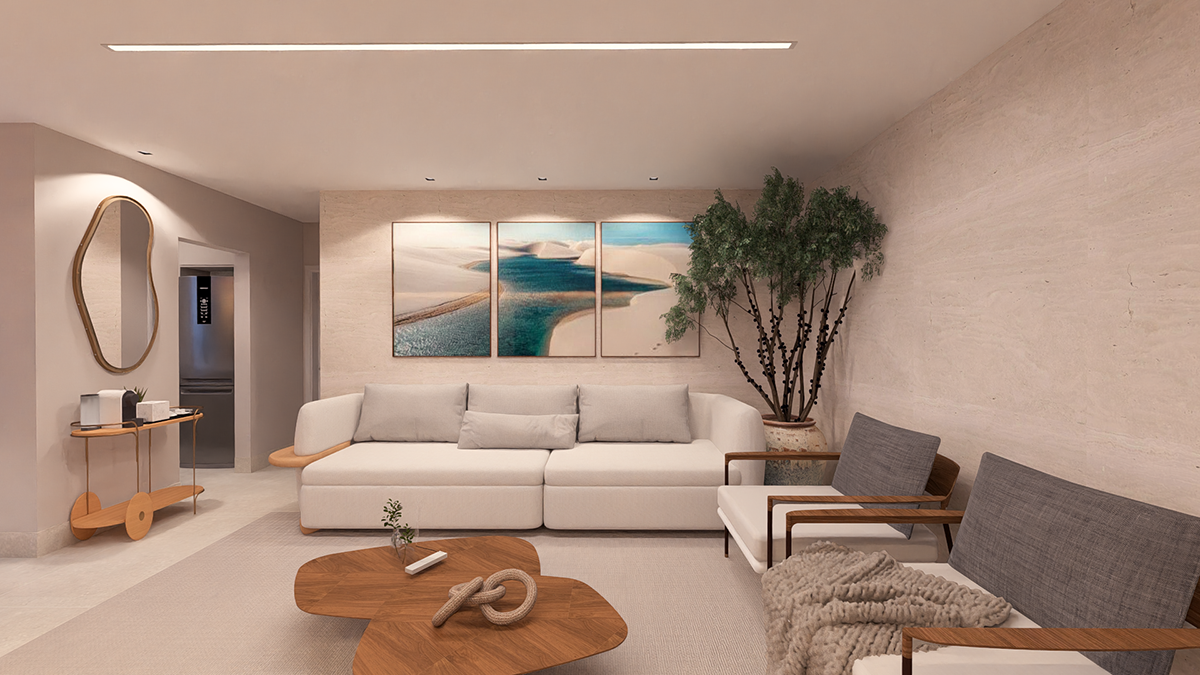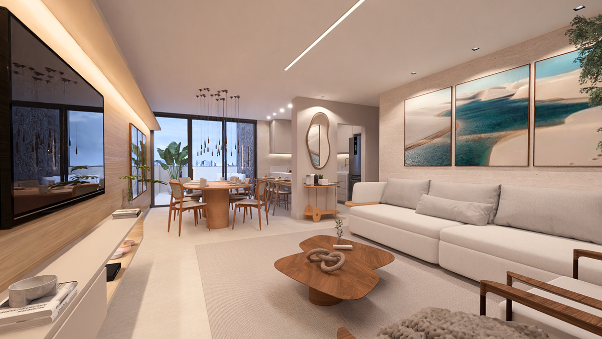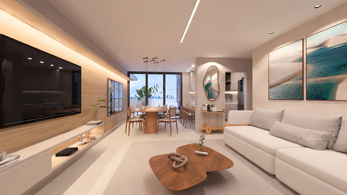 Projeto de personalização de um apartamento de área privativa comprado na planta, com ampliação da sala e redefinição do layout interno. Reposicionamos a área de serviço para uma abertura externa, permitindo ampliar as bancadas da cozinha e otimizar o uso diário. Todos os ambientes foram conectados por uma curadoria de acabamentos que traz leveza, continuidade e harmonia ao conjunto